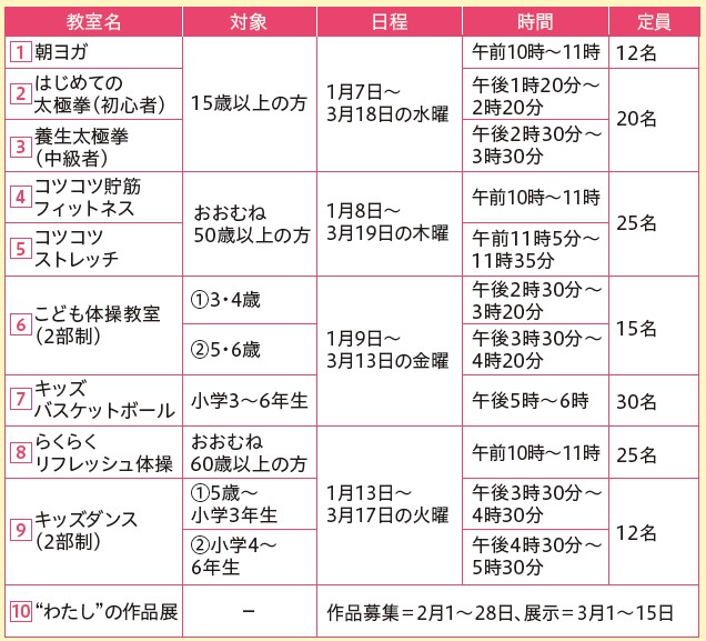 申込方法:問合先へ電話か来館。12月22日10時から受け付け
