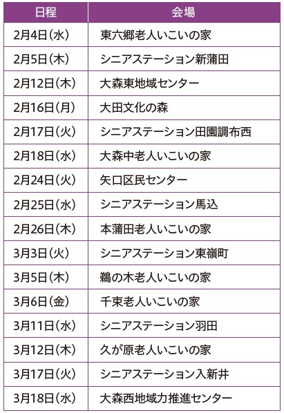 (2)3月3日(火) 午後3時~4時…シニアステーション馬込