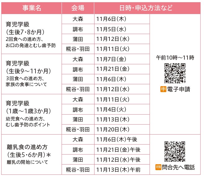※問い合わせは催しごとに記載の地域の地域健康課へ