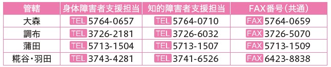 くらし 令和8年4月からの障がい者通所施設の利用申し込みを受け付けます 11/12 前の記事 次の記事 発行日 : 2025年11月21日 自治体名 : 東京都大田区 広報紙名 : おおた区報 令和7年11月21日号 申込方法:お住まいの地域を管轄する地域福祉課へ電話の上、来所。12月19日締め切り ■下表の区立施設は、利用申し込みを随時受け付けています 問合せ:地域福祉課 Tweet シェアする JAL工場見学とそらエコ教室 その他のお知らせ(おおた区報 令和7年11月21日号)