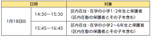 対象:区内在住・在学の小学1年生(区内在勤の保護者の子を含む)