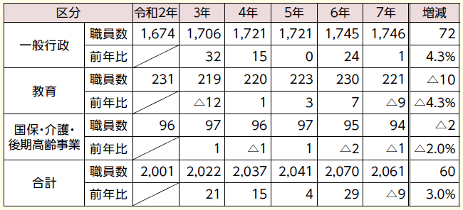 多様化する区民ニーズや新たな行政需要に対応しながら、厳しい財政状況を見据え、職員数の適正化に向けた取り組みを行なっています。