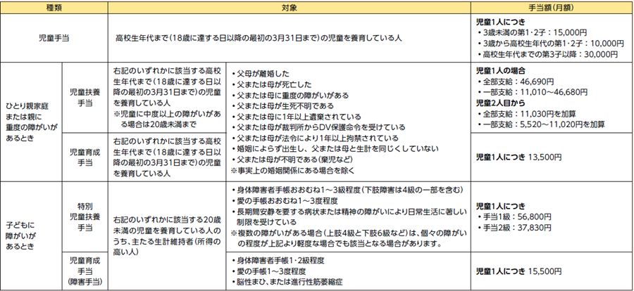手当・助成などを受けるには、申請が必要です。所得制限などの各種条件や申請に必要なものなど詳しくは、区ポータルを確認してください。