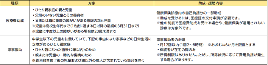 ◆ひとり親家庭などへの助成・援助