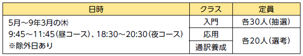 ※応用クラス・通訳養成クラスの選考試験は、3月22日10:00から行います。