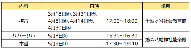 場所:鳩森八幡神社能楽殿(千駄ヶ谷1-1-24)