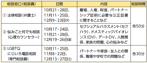 ジェンダーやセクシュアリティーなどの人権に関する相談窓口です。