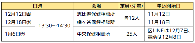 問合せ:中央保健相談所保健サービス第一係・第二係