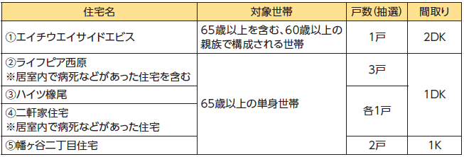 ・家族向け、単身者向け(一般住宅、居室内で病死などがあった住宅)
