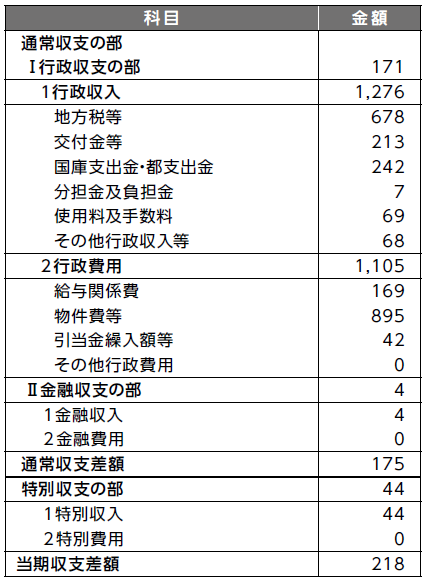 行政活動に伴って発生した収入および費用を表しています。