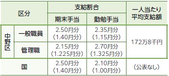 中野区では、特別区人事委員会の勧告に基づき、条例により給与を決定しています。