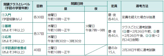 対象:将来、手話通訳者として活動できる、区内在住・在勤・在学の16歳以上の方