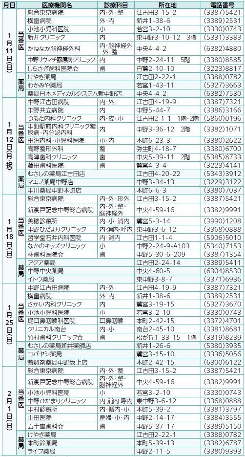 当番医・当番薬局が変更になる場合があります。最新の情報は区HPで確認を