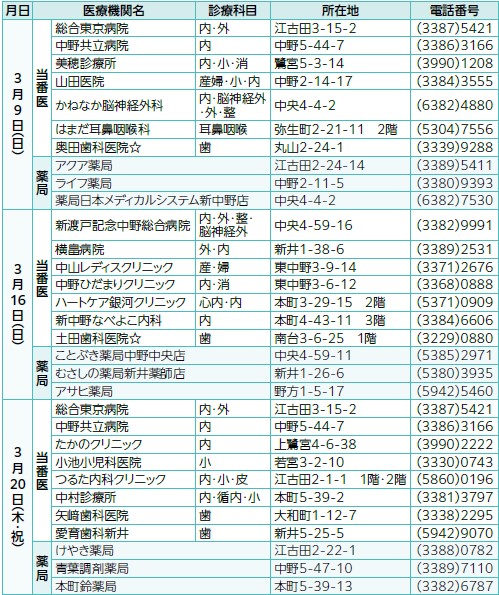当番医・当番薬局が変更になる場合があります。最新の情報は区HPで確認を