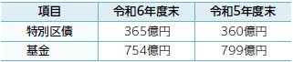 区の普通会計の現在残高は、上表のとおりで、基金が昨年度末より46億円減りました。