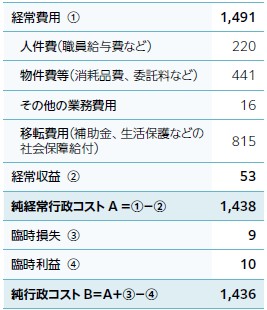 一会計期間中の区の費用・収益の取引高を明らかにしたものです。純行政コストを税収等の財源で賄っています。