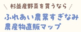 ふれあい農業すぎなみ 農産物直販マップでは、区の生産者や新鮮採れたて野菜を購入できる場所を紹介しています。産業振興センター(上荻1-2-1 Daiwa荻窪タワー2階)、区役所1階、区民事務所、地域区民センター、図書館などで配布しています。または区HPからもご覧いただけます。