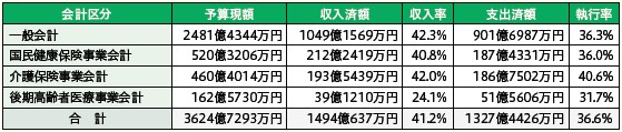 表1:各会計の予算執行状況