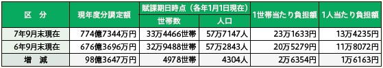 表2:区民税の負担状況
