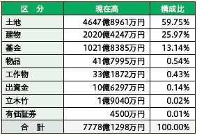 土地・建物・基金などの財産の9月末現在高は7778億1298万円です。(表3)