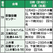申込み:はがき(記入例)に番号・希望会場(1カ所)も書いて、10月31日までに荻窪保健センター