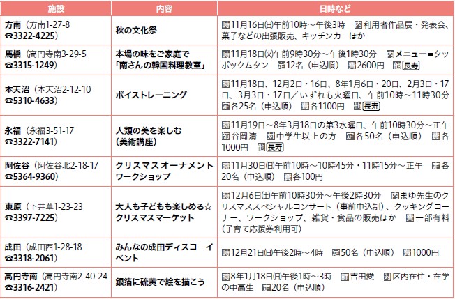 イベント コミュニティふらっとの講座・催し 30/52 前の記事 次の記事 発行日 : 2025年11月01日 自治体名 : 東京都杉並区 広報紙名 : 広報すぎなみ 令和7年11月1日号 No.2415号 コミュニティふらっとでは、さまざまな講座や多世代交流イベントを開催しています。 ※申し込み・問い合わせは、各コミュニティふらっとへ。 Tweet シェアする イベントひろば「催し」 イベントひろば「講演・講座(1)」(1)