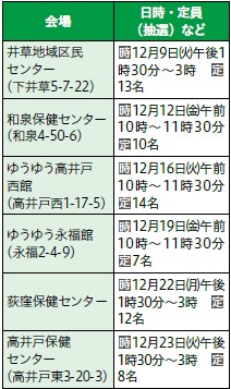 申込み:申し込みフォーム(区HP同案内参照)から、11月28日までに申し込み