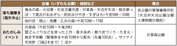 問合せ:落ち葉感謝祭実行委員会事務局(みどり公園課北公園緑地事務所)