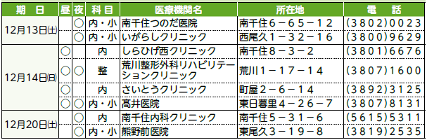 ※当番の医療機関は変更になる場合があります