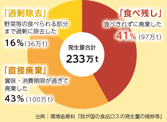 日本の食品ロスの約半分は家庭から排出されており、その約4割は食べ残しによるものです。食品ロスを減らすため、まずは残さず食べきる工夫から始めてみませんか。