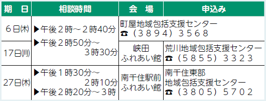 内容:専門医・保健師・相談員等による在宅療養上の医療・福祉・介護相談