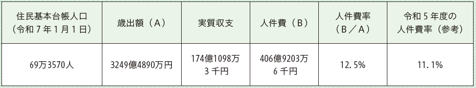 (注)職員数は一般職に属する職員数であり、臨時職員および非常勤職員は含みません(ただし、会計年度任用フルタイム勤務職員は職員数に含みます)。
