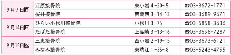 ※当番接(整)骨院は変更になる場合があります。変更がある場合は区HPに掲載しています。
