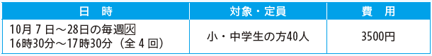 ※申し込み方法や最新情報は各施設のHPをご覧ください。