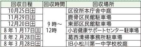 回収場所:区役所本庁舎、小松川・葛西・小岩・東部・鹿骨区民館