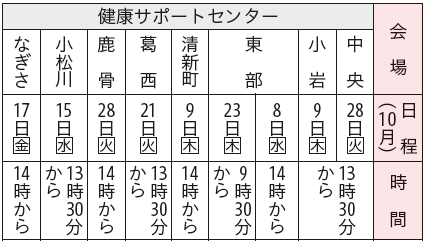 申し込み:前日までに最寄りの健康サポートセンターへ電話で