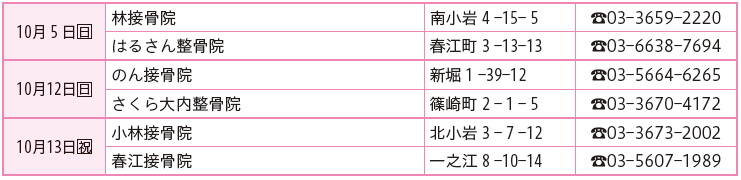 ※当番接(整)骨院は変更になる場合があります。変更がある場合は区HPに掲載しています。