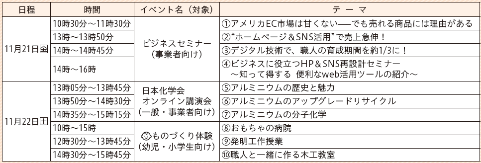 場所:タワーホール船堀(1)(4)(9)(10)2階蓬莱(ほうらい)・(2)(3)4階401会議室・(8)3階えどがわエコセンター多目的ルーム、(5)(6)(7)オンライン(Zoom(ズーム)を使用)
