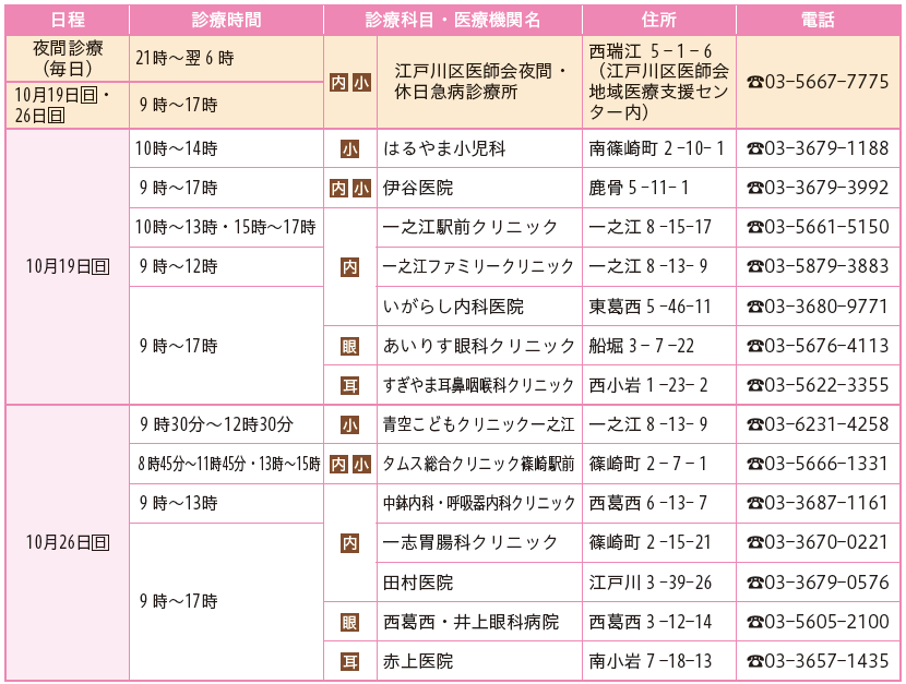 ※医療機関は変更になる場合があります。変更がある場合は江戸川区医師会HPに掲載しています。