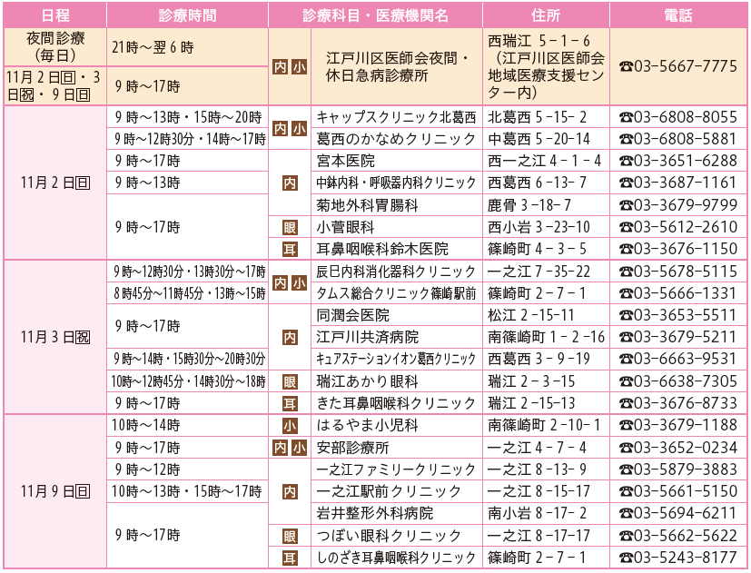 ※医療機関は変更になる場合があります。変更がある場合は江戸川区医師会HPに掲載しています。