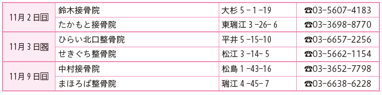 ※当番接(整)骨院は変更になる場合があります。変更がある場合は区HPに掲載しています。