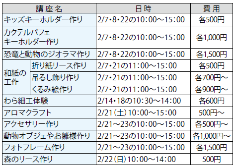 ・費用の記載のない催しなどは無料です。