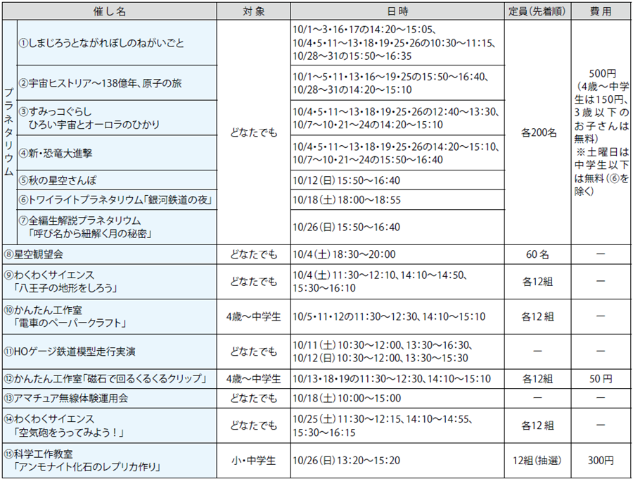 ・申し込みの記載のない催しなどは直接会場へお越しください。