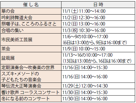 ◆〔未来に つなぐ 文化の花〕11月開催分 市民文化祭