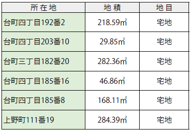 右下表の市有地を一般競争入札で売却します。参加方法など、詳しくは市役所5階区画整理課、市のホームページで配布する参加要領をご覧ください。