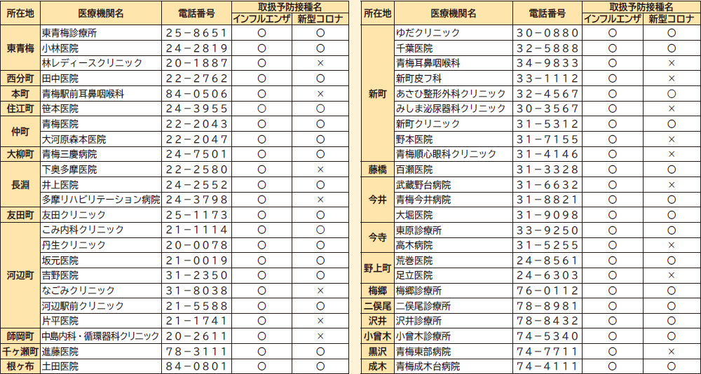 事前に各医療機関の診療日、予約の要・不要を確認してください。接種の際は本人確認書類を持参してください。