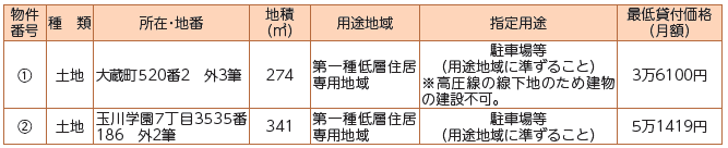 申込み:12月19日までに直接(1)市有財産活用課(2)道路整備課へ。郵送の場合は12月12日まで(必着)に提出してください。