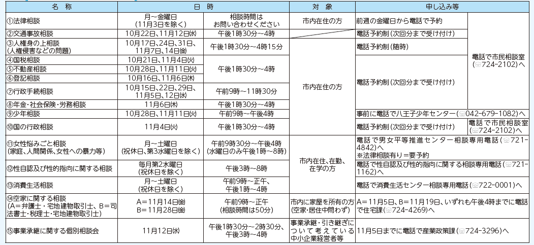 「暮らしに関する相談」は、毎月15日号に1か月分をまとめて掲載しています