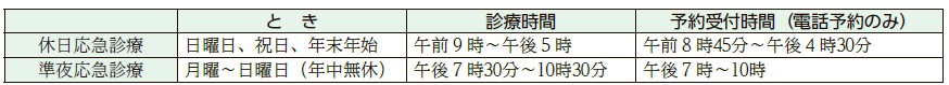 ※応急診療所の診療科目は内科と小児科です。高校生以下の受診は、保護者の同伴が必要です。