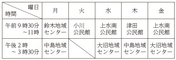 表1 動く市役所の巡回日程
